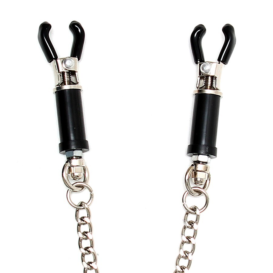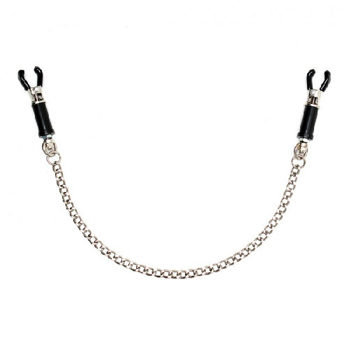 Siver nipple clamps and chain that are adjustable by simply twisting the clamp